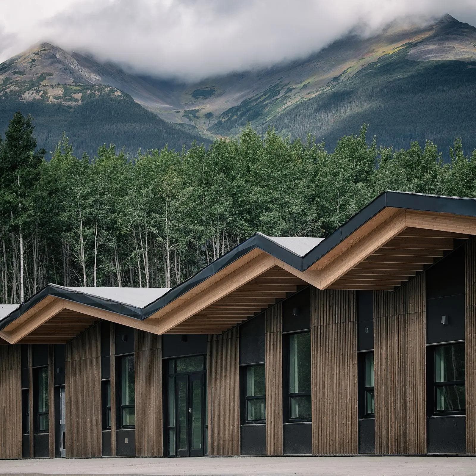 New 4,000 m² wood-frame secondary school for Gitxsan communities with exterior curtain walls and commercial glazing by Sky Windows.